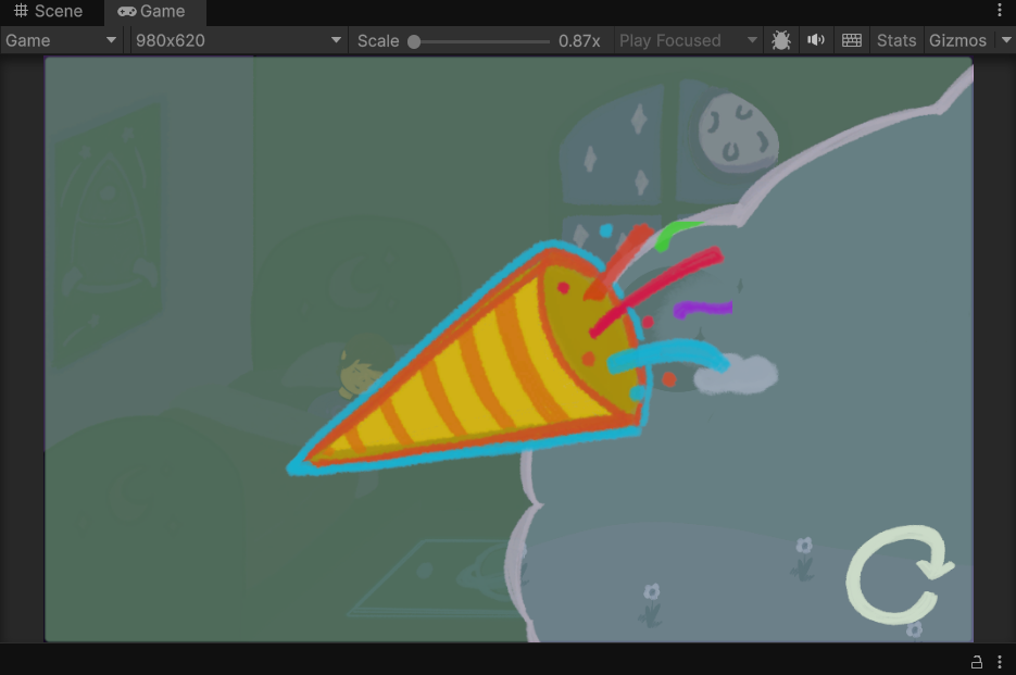 I started off by doing plain 2D and just trying to get the game to work on a base level, and for any iteration after the first I did an overhaul of the graphics to make it look a little more polished and cozy. Some of the pictures below did not get used (specifically the first, which was just the very first initial idea of what the child might look like).